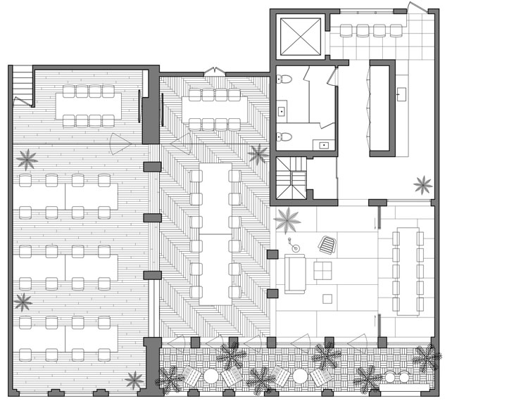 Sàn không chỉ là lớp hoàn thiện, mà trở thành yếu tố kết nối giữa lịch sử công trình và ngôn ngữ thiết kế đương đại.